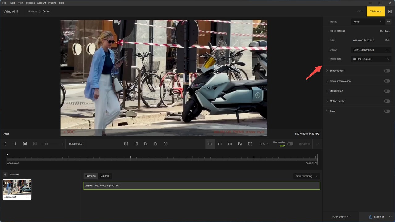 - AI Frame Interpolation: Supports creating the appropriate number of new frames for FPS conversion or slow-motion for smoother video or slow motion playback.