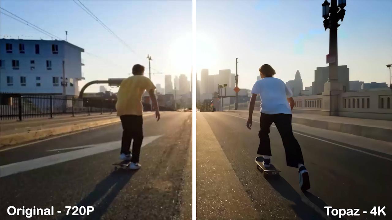 This is the fastest tool that I used, but the free trial can only upscale videos to 2556×1440px. Comparing these two pictures, we can find the video enhancement is not obvious, and if we zoom in on the video screen, we can find the effect is bad, and it's not free to download.