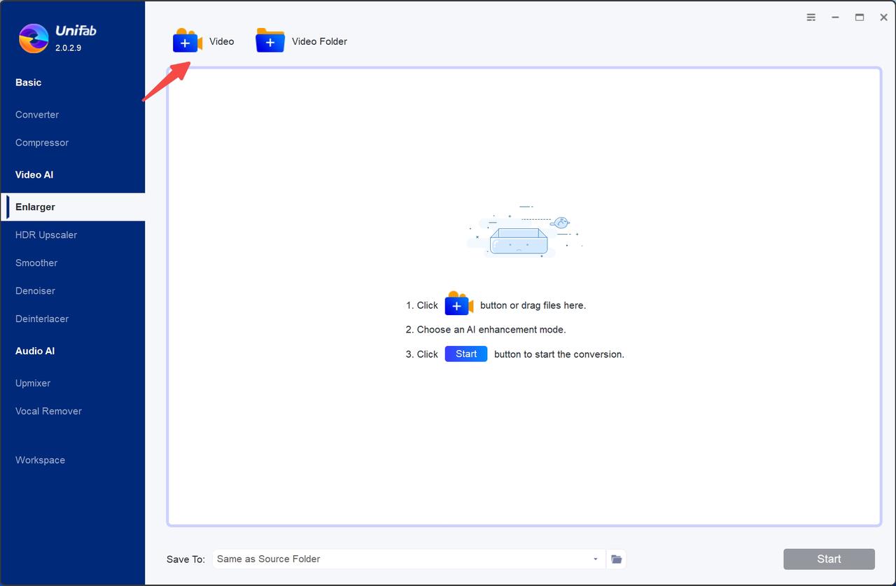 - Friendly for newbies: Without excessive modeling and parameterization, users can complete video upscale in 3 steps: Upload videos, set the AI enhancement mode and satrt conversion.