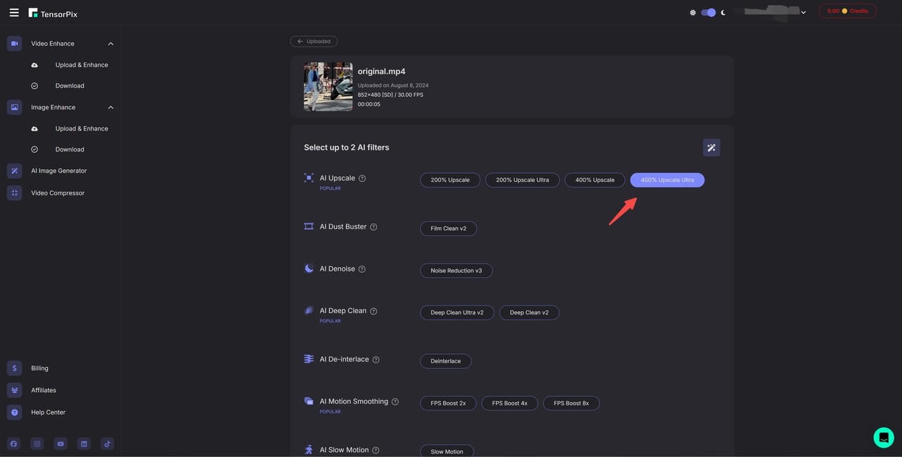- Relatively Single Function: Compared to some professional video editing software, features of TensorPix are relatively single, mainly focusing on video quality enhancement, and fewer editing features in other aspects.