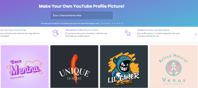 その名前からわかるように、このツールはYouTubeチャンネルに特化したアイコンメーカーです。ロゴを作成する際に自由に使えるオプションがたくさんあり、チャンネル名を表示させることも可能です。デザイン、教育、ゲーム、ヘルスケア、音楽、写真など、思いつく限りのニッチな分野のテンプレートが用意されています。万が一、探しているジャンルが見つからない場合は、製作社に連絡を取り、自分だけのカスタムグラフィックやコンテンツをリクエストすることもできます。