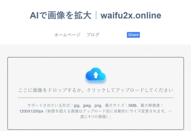 本家waifu2xにかなり近い派生サービス。とにかくシンプルな操作画面で簡単に行えるのが特徴