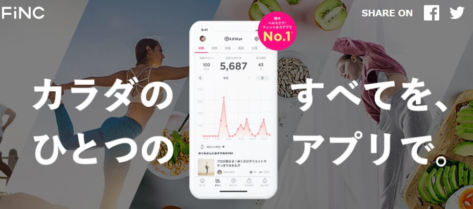 FiNCは、食事の写真を撮影すると、AIが食事解析してくれてカロリーや脂質、炭水化物、タンパク質などをバランス表示してくれます。アプリは歩数計としての役割も兼ねてくれるので、万歩計を使わないで日々の運動管理が可能です。また、カレンダーをタップすれば生理日の管理もでき、女性の健康管理に役立ってくれます。