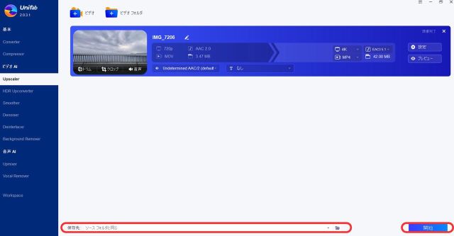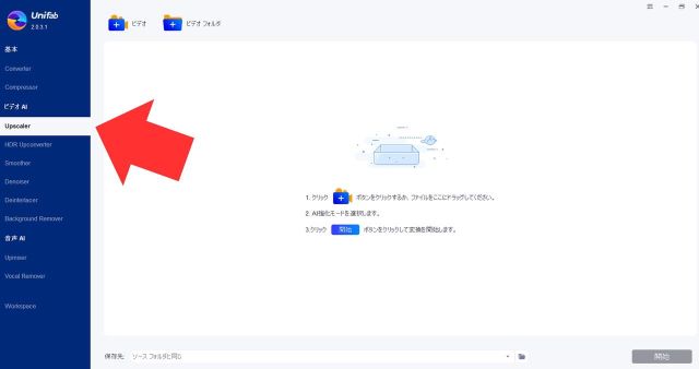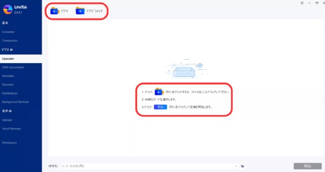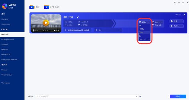 以下、UniFab 動画高画質化 AIによって動画画質を上げる詳しい操作手順です。