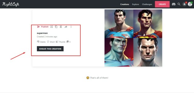 Just after you have clicked on create option, your image will be automatically generated within a few seconds. You can observe the performance of the software easily with the help of those free credits. You can publish your creation you can download it easily. And if you have any issues with it, then you can also evolve your creation to make it more unique.