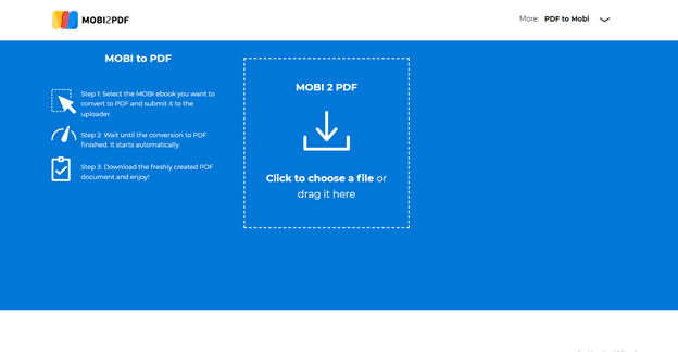 Online Converter (www.onlineconverter.com) is an efficient and straightforward Mobi to PDF file converter that offers a basic approach to file conversion. It is designed for online file conversion without any unnecessary complications.