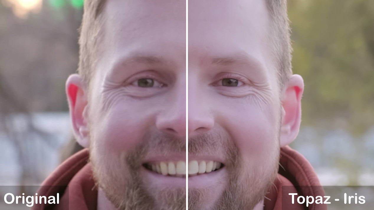 The video conversion uses the Iris model, which is a model that Topaz Video AI specifically uses for converting character material, aiming to enhance facial effects. As you can see from the image, the improvement in texture and clarity of the picture is very noticeable. The hair strands, corner eye wrinkles, and teeth of the character all retain their original patterns while increasing in clarity. The converted image is very realistic and does not soften facial wrinkles.