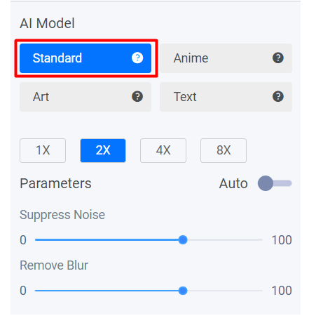 While operating VanceAI Image Upscaler, the user will be given the standard settings by default. These settings will provide two necessary options including; Suppress Noise and Remove Blur. Users can easily find their fix by adjusting the scales according to their requirements.